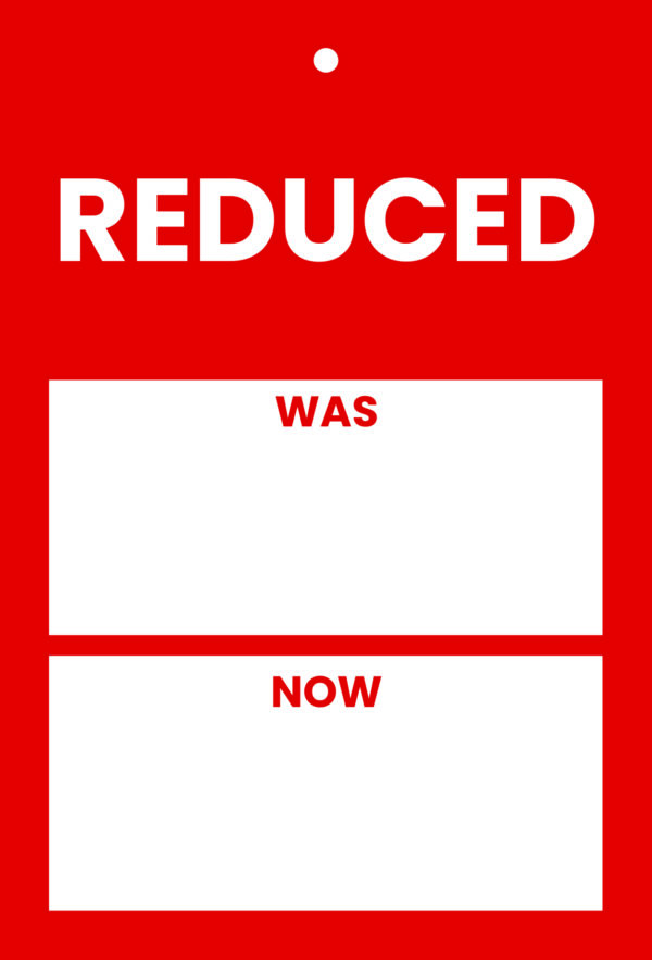 Keep customers coming back for more with these rectangular tags. The cutting-edge design and colours make a strong impression on prospective buyers. Place them on discounted items to draw the attention of passers-by, or place multiple tags together to create a display of deals.